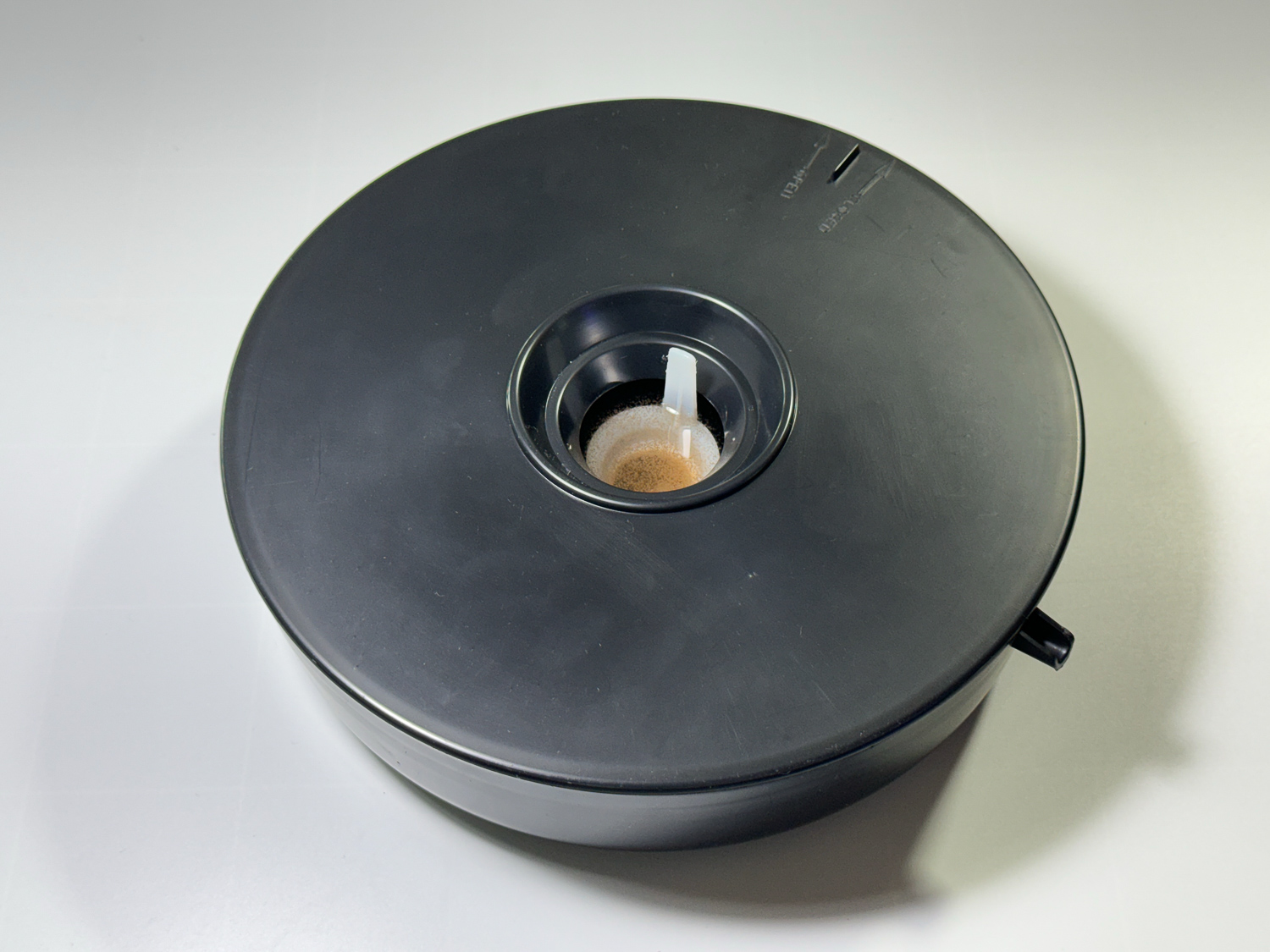 제품 옆면에 난 삐죽한 구멍/돌기는 기포기 호스 연결용입니다. 혹시 원하면 쓰라는 건데 필요를 느끼지 않고 있습니다. 잘만 되고 있는데 괜히 끓어넘칠까 걱정도 되고 기포기 소음도 결코 정겹지 않아서요. 세팅할 땐 뚜껑의 표시된 부분이 여기와 엇갈리게만 하면 됩니다.
