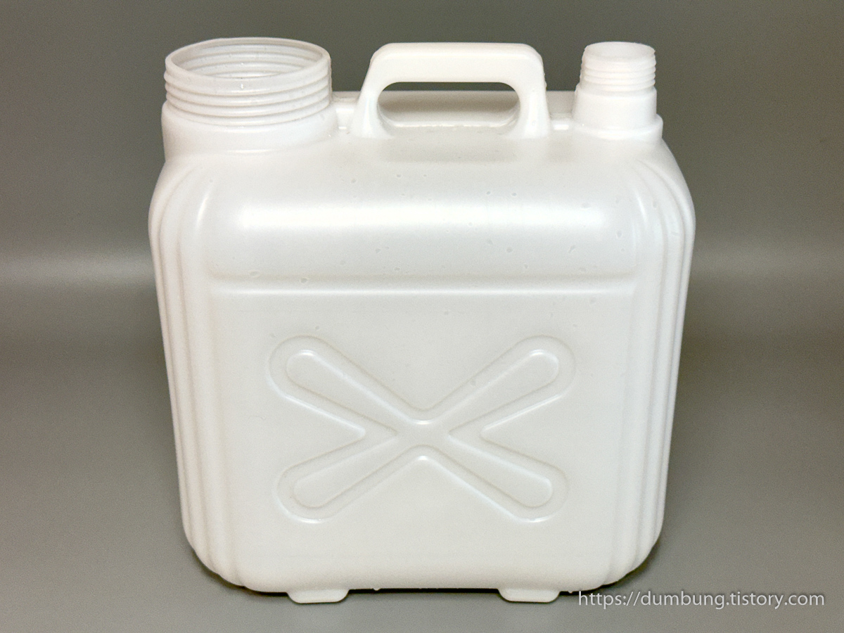 (3) 20리터 말통: 이 또한 친숙한 물건이죠. 소금 녹일 때도 쓰고 보충수통이나 퇴수통으로 쓰기도 좋아서 여러 개 구비해둬야 하는 '짠물계의 UP 환수통'.(UP 6리터짜리의 반값이면 20리터짜릴 살 수 있음요.) 넓은쪽 주둥이의 너비가 보통 10cm(=4인치)입니다만 주문하기 전에 확인은 해두셔요.