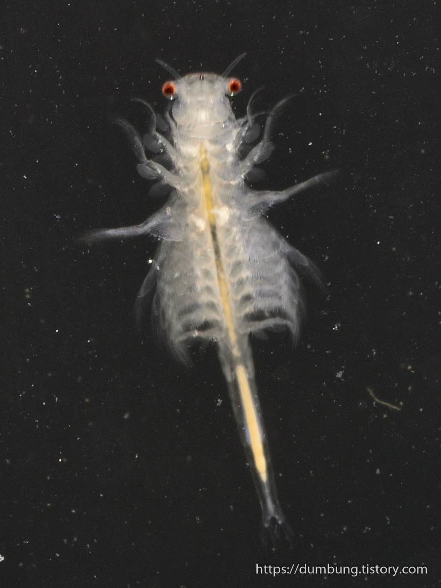 이렇듯 성체가 되기까지 한 달이나 걸리고(물벼룩은 며칠), 성체가 될 때까지의 생존율도 상당히 낮은 데다, 영양가는 유생보다 떨어지는 탓에 브라인 성체를 생먹이용으로 장기배양하는 분을 찾아보기 힘들다는 사실을 직접 겪고서야 깨달았다죠;; 덕분에 이런 포스팅을 할 수 있게는 됐지만요.